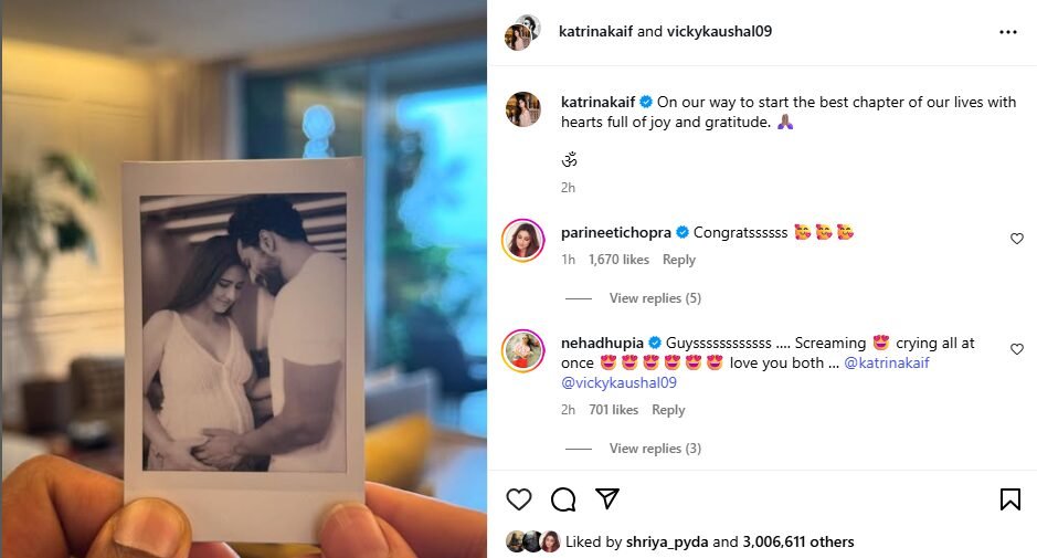 Finally, the good news is out! Bollywood’s star couple Katrina Kaif and Vicky Kaushal announced their pregnancy through social media and shared their happiness with netizens and fans.