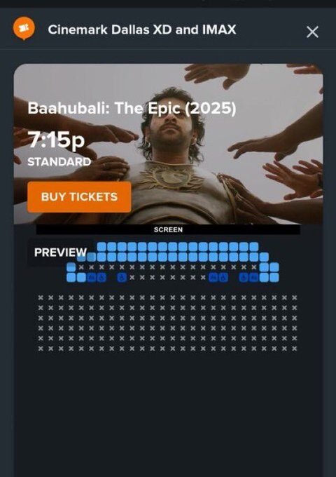 ఇప్పటికే అమెరికాలో బాహుబలి: ది ఎపిక్ అడ్వాన్స్ బుకింగ్స్ ప్రారంభమయ్యాయి. మొదటి కొన్ని గంటల్లోనే భారీ స్థాయిలో టికెట్లు అమ్ముడైపోయాయి. మొత్తం 3,001 టికెట్లు విక్రయమవ్వగా, $60,603 (దాదాపు ₹50 లక్షలు) గ్రాస్ కలెక్షన్ రాబట్టింది. మొత్తం 107 లొకేషన్స్లో, 107 షోలకు బుకింగ్స్ ఓపెన్ అయ్యాయి.