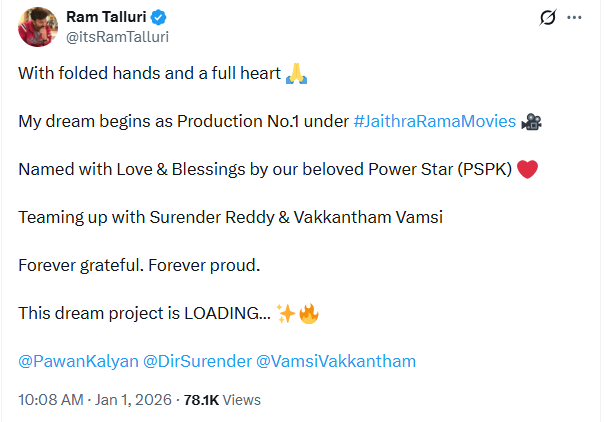 ఈ సినిమా ఈ సమ్మర్ లో రిలీజ్ అంటున్నారు… చూద్దాం! ఇక నెక్స్ట్ పవన్ సినిమాలు ఉండవా అంటే, అయ్యో మొన్నే కదా న్యూ ఇయర్ సందర్బంగా సురేందర్ రెడ్డి తో సినిమా అనౌన్స్ చేసారు. ఈ సినిమా కి నిర్మాత రామ్ తల్లూరి. సో, ప్రత్యేకంగా ఈ సినిమా కోసమే ‘జైత్ర రామ మూవీస్’ బ్యానర్ లాంచ్ చేసారు కూడా.
