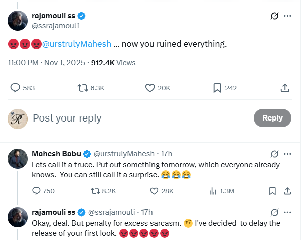అందుకే నిన్న రాత్రి… నవంబర్‌ మొదటి రోజునే మహేష్ బాబు సరదాగా రాజమౌళిని ట్యాగ్ చేస్తూ “It’s November already @ssrajamouli 👀” అంటూ సోషల్ మీడియా లో హంగామా మొదలెట్టాడు.