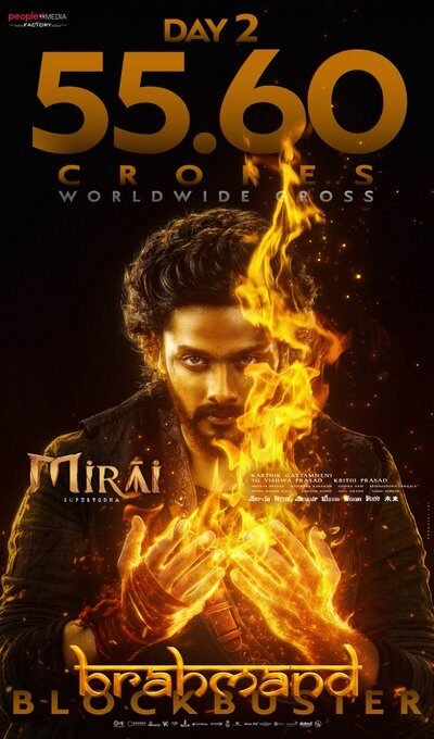 తేజ సజ్జా మిరాయి బాక్సాఫీస్ వద్ద సునామీలా దూసుకుపోతోంది. రిలీజ్ రోజునే 27.2 కోట్ల గ్రాస్ వసూళ్లు సాధించి బలమైన ఆరంభం ఇచ్చిన ఈ సినిమా, రెండో రోజు శనివారం 55.6 కోట్ల వరల్డ్వైడ్ గ్రాస్తో మరింత పుంజుకుంది. టాలీవుడ్లో సాధారణంగా డే–2 కలెక్షన్స్ తగ్గుతాయి. కానీ ఈ సినిమా కి మాత్రం కలెక్షన్స్ ఊహించని రీతిలో పెరగడం, పాజిటివ్ టాక్ బలంగా ఉన్నట్టే నిరూపిస్తోంది.