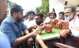 చిత్తూరు జిల్లా, పలమనేరు లోని కుంకీ ఏనుగుల క్యాంప్ సందర్శన ఇంకా అటవీ శాఖ అధికారులతో సమీక్షలో పాల్గొనేందుకు చిత్తూరు జిల్లా పలమనేరు చేరుకున్న సమయంలో, హెలిప్యాడ్ దగ్గర ప్రజల నుంచి వినతులు స్వీకరించిన ఉప ముఖ్యమంత్రి, పర్యావరణ అటవీ శాఖ మంత్రి పవన్ కళ్యాణ్.